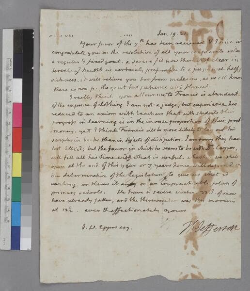 Thomas Jefferson, Monticello, letter to Francis Wayles Eppes