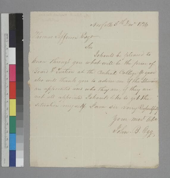John B. Ogg, Norfolk, letter to Thomas Jefferson