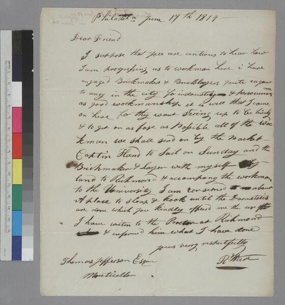 Richard Ware, Philadelphia, letter to Thomas Jefferson, Monticello