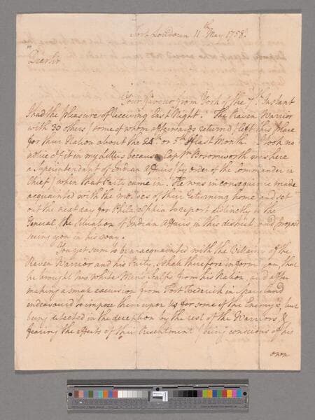 Autograph letter signed. On page 3: Sir John St. Clair to John Forbes, 1758 May 13, autograph note signed; endorsed by John Forbes. (3 pages)