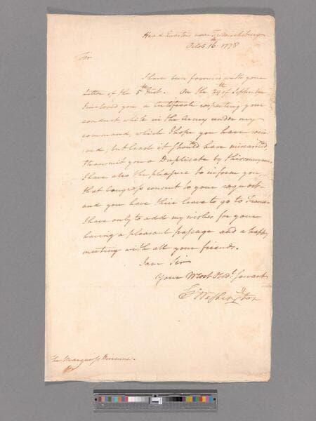 Letter from George Washington, headquarters near Fredericksburg, to the Marquis de Vienne