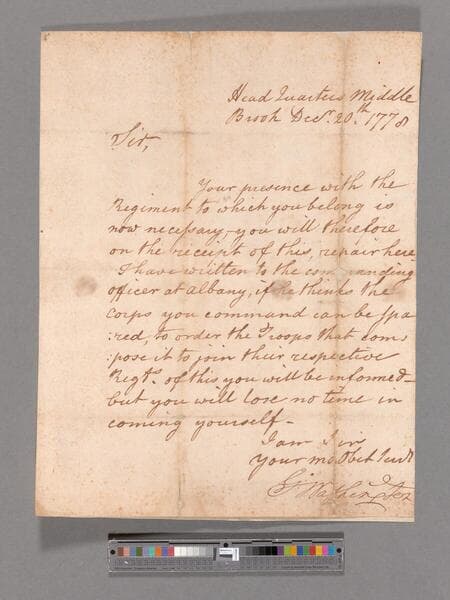 Letter from George Washington, headquarters Middlebrook, to Major General Alexander McDougall