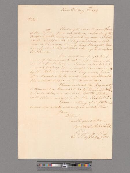 Letter from George Washington, headquarters Middlebrook, to Major General Alexander McDougall