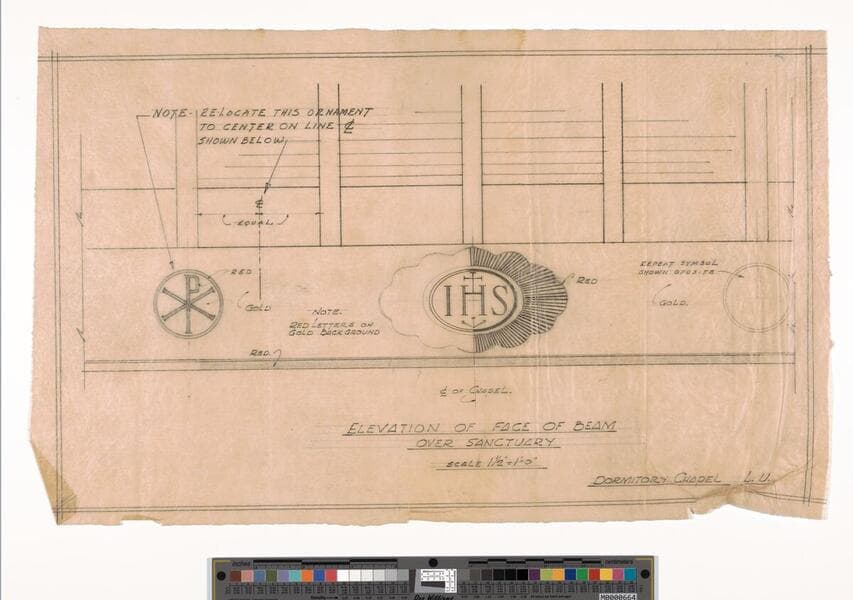 26 drawings: Site, plot, foundation, and floor plan, elevations, sections, details. Name later changed to Loyola Marymount University.