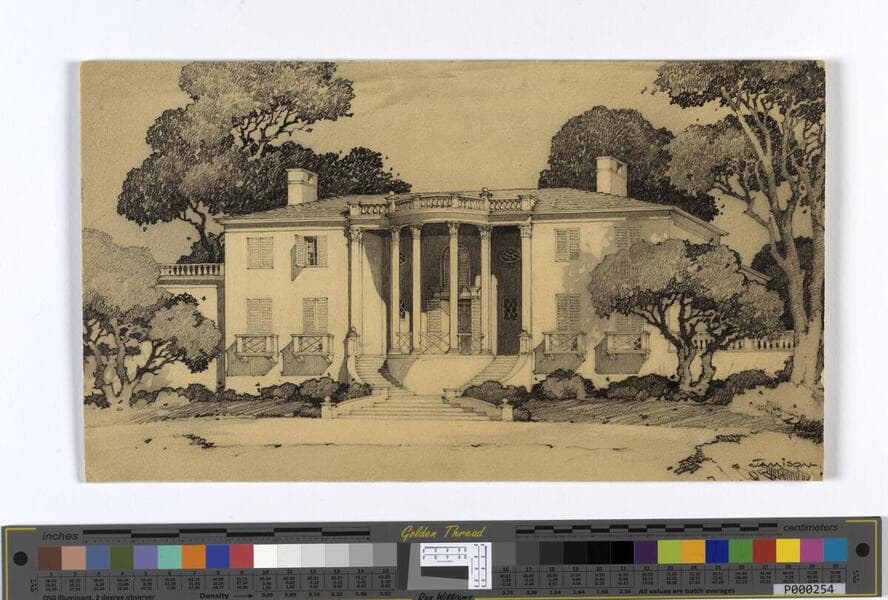 Photograph of sketch for residence for Charlie Chaplin and Paulette Goddard, Beverly Hills