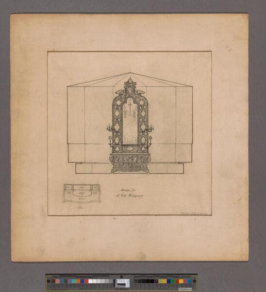 1 drawing of a decorative reliquary, commissioned by Mrs. Doheny for St. Vincent de Paul Church, Los Angeles.
