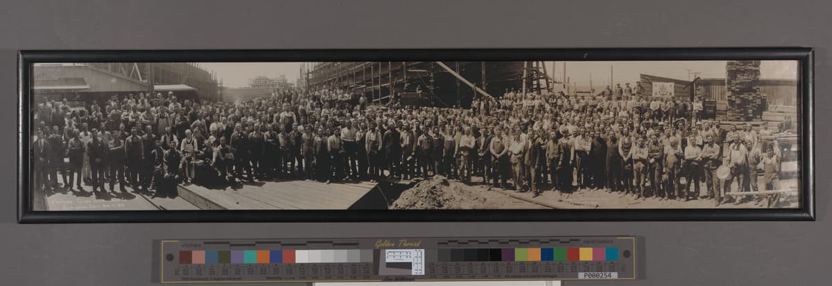 Panoramic photograph: "Employees, Fulton Shipbuilding Company, Wilmington, Ca."