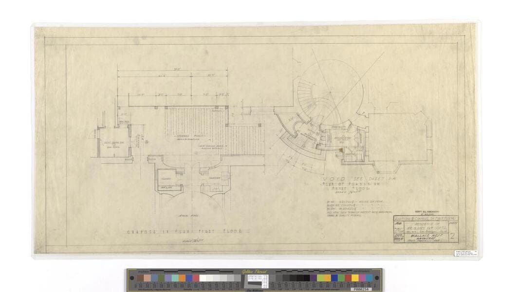 Plot, foundation and floor plans, elevations, sections, details. Built 1928, alterations in 1934.