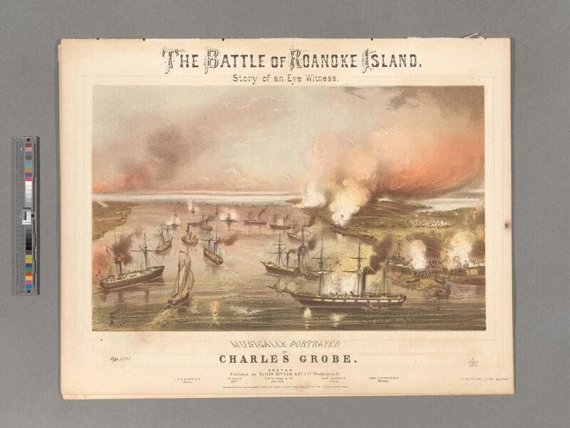 The Battle of Roanoke Island : story of an eye witness, Op.1395 / musically portrayed by Charles Grobe