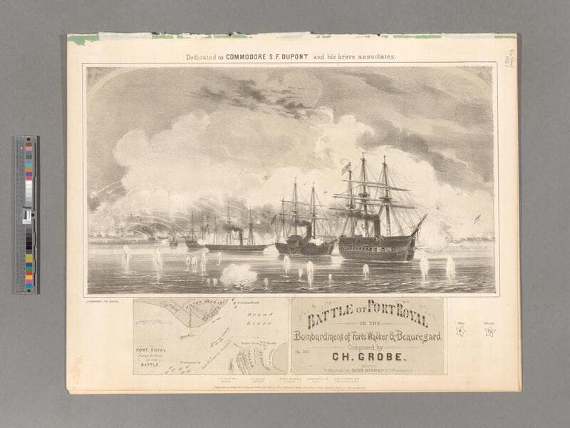 Battle of Port Royal, or the bombardment of Forts Walker and Beauregard Op. 385 / composed by CH. Grobe