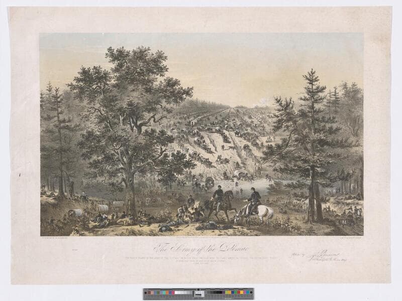 - Image of wagon trains of the Army of the Potomac en route from Chickahominy to James River, Virginia, during the Seven Days Battles during the American Civil War; fording Bear Creek one mile below Savage Station, June 29th, 1862.