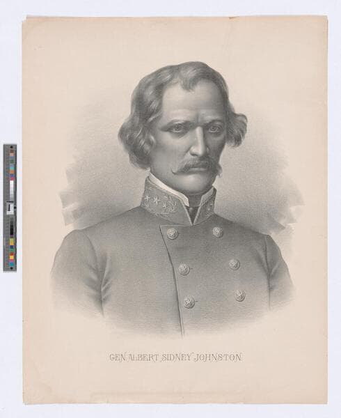 - Image of a bust-length portrait of American Civil War Confederate General Albert Sidney Johnston in military uniform.