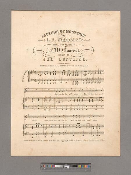 Capture of Monterey [sic] / music by I. B. Woodbury written & respectfully inscribed to F. W. Moores (U. S. Navy) by Ned Buntline