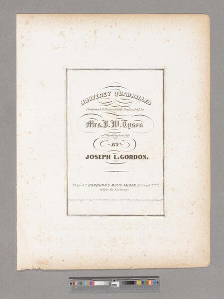 Monterey [sic] quadrilles / composed & respectfully dedicated to Mrs. I. W. Tyson of Washington City by Joseph L. Gordon