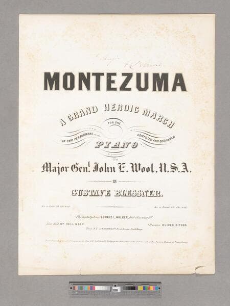 Montezuma : a grand heroic march for one or two performers on the piano / composed and dedicated by permission to Major Genl. John E. Wool, U. S. A. by Gustave Blessner