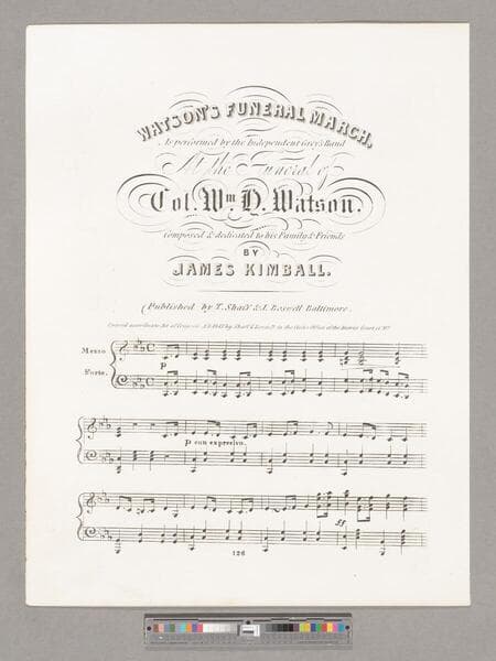 Watson's Funeral March / as performed by the Independent Grey's band at the funeral of Col. Wm. D. Watson ; composed & dedicated to his family & friends by James Kimball