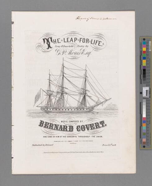 The leap for life : song & quartette / poetry by G. P. Morris, Esq. ; music composed by Bernard Covert and sang by him at his concerts throughout the Union