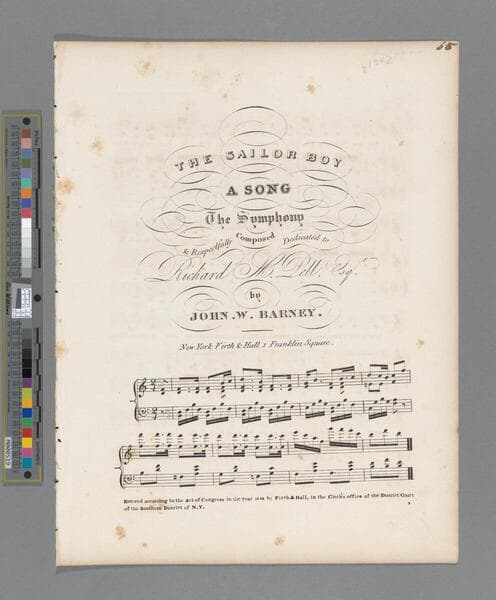 The sailor boy : a song / the symphony composed & respectfully dedicated to Richard M. Dell. Esq. by John W. Barney