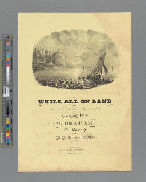 While all on land : the celebrated barcarolle / as sung by Mr. Braham the music by D. F. E. Auber