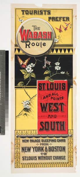 Image of a poster with text advertising the Great Wabash Route of the Toledo, Wabash & Western Railway.