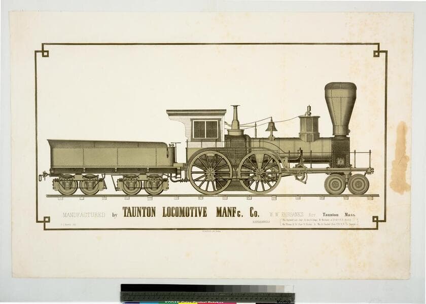 Manufactured by the Taunton Locomotive Manfg. Co. W. W. Fairbanks, agent, Taunton, Mass