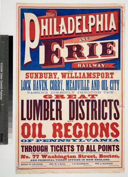Philadelphia and Erie Railway. : For Sunbury, Williamsport Lock Haven, Corry, Meadville and Oil City passing directly through the great lumber districts and oil regions of Pennsylvania