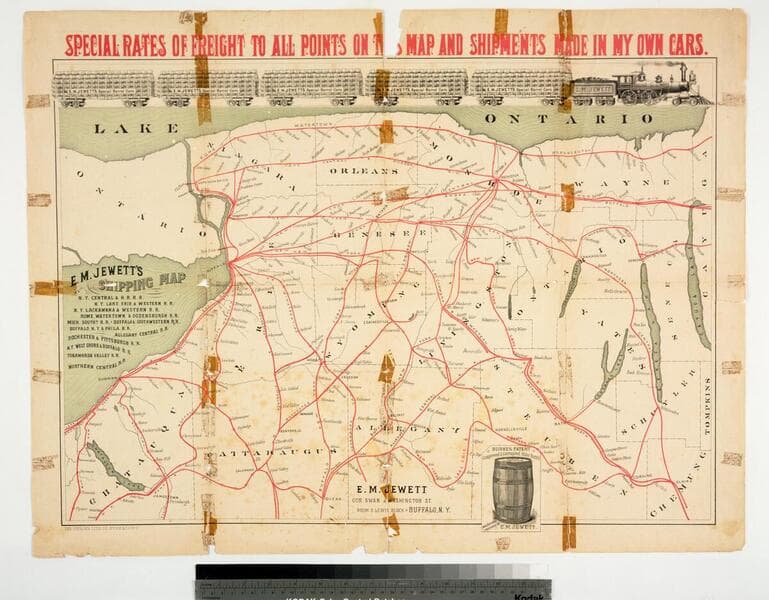 E.M. Jewett's shipping map on N.Y. Central & H.R.R.R. N.Y. Lake Erie & Western R.R