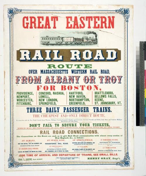 Great Eastern rail road route over Massachusetts western rail road, from Albany or Troy for Boston