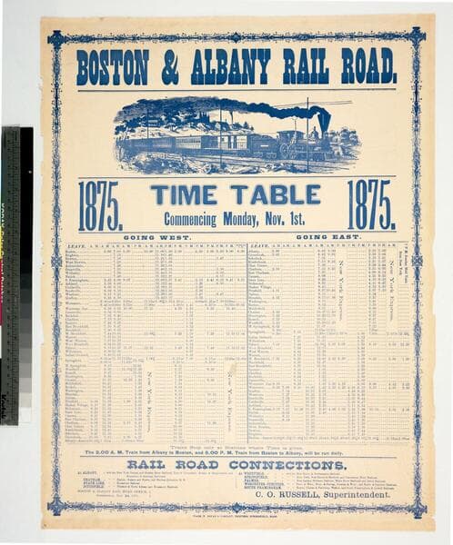 Boston & Albany Rail Road. : 1875. Time table commencing Monday, Nov. 1st. 1875
