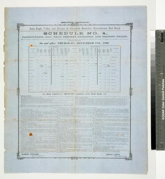Bald Eagle Valley and Tyrone & Clearfield branches, Pennsylvania Rail Road. : Schedule no. 4. Pennsylvania Rail Road Company passenger and freight trains