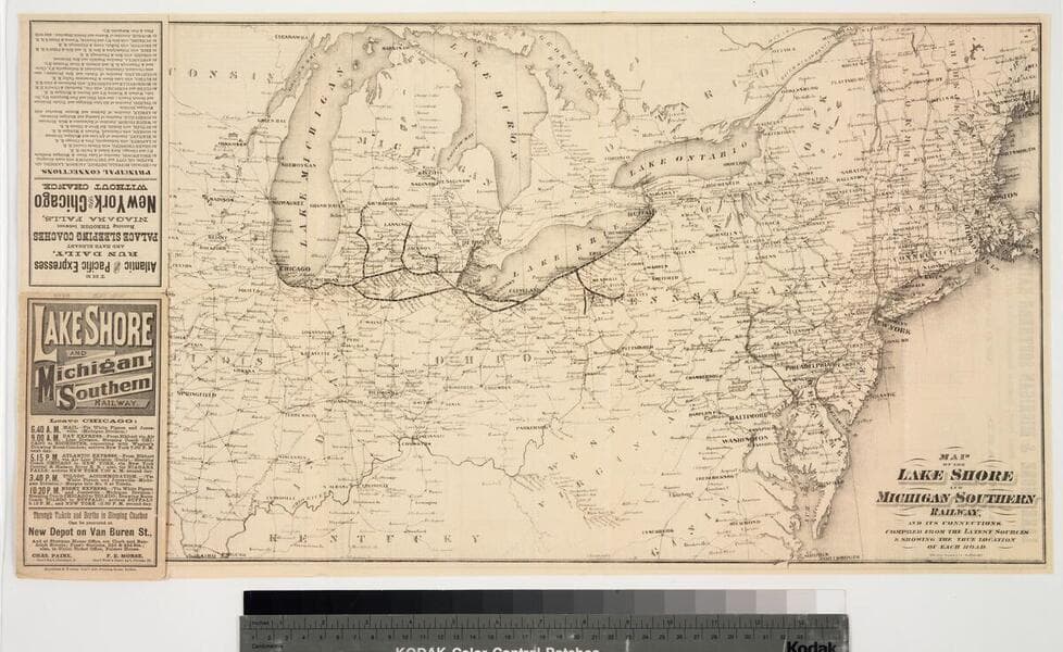Map of the Lake Shore and Michigan Southern Railway, and its connections. Compiled from the latest sources & showing the true location of each road