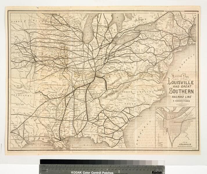 Map of the Louisville and Great Southern Railroad line & connections