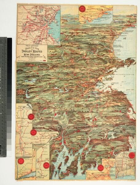 Birds eye view of trolley routes in New England. : Trolley wayfinder