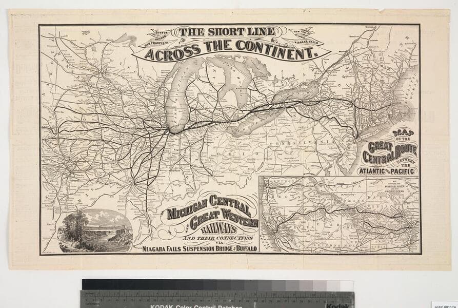 The short line across the continent. : Map of the great central route between the Atlantic and Pacific : Michigan Central and Great Western Railways