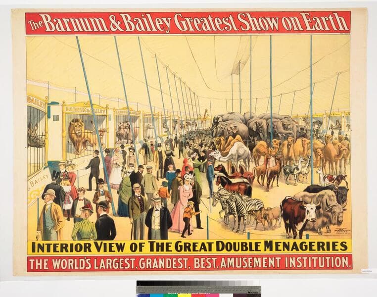 Barnum & Bailey greatest show on Earth : strange and savage tribes : a glimpse of the great menagerie tent, showing the loose led animals and grand ethnological congress