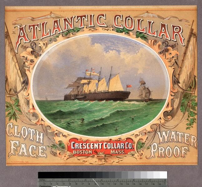 Atlantic collar : cloth face : water proof : Crescent Collar Co. Boston Mass