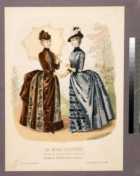 La mode illustrée bureaux du journal, 56, rue Jacob, Paris. Toilettes de Mme. Coussinet, rue Richer, 43