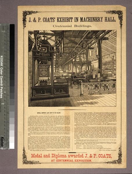 One manufacturer's advertisement/drawing book entitled Children's Drawing Book, published by The Coats Thread Co., American Works, Pawtucket, Rhode Island, ca. 1890. This drawing book is 8 pages in length and contains 5 images, on grids, for copying onto separate grids. The first image is on the inside of the front cover. The front and back covers are printed in red. The title is framed by a decorative flourish above an image of an open sketchbook with drawing tools. Beneath is printed: "Presented by The Coats Thread Co. Sole agents U.S. for J. & P. Coats' Spool Cotton. (American Works, Pawtucket, R.I.)". On the back cover is an image of a spool of thread with the words "J. & P. Coats' best six cord spool cotton. White, fast black & colors."