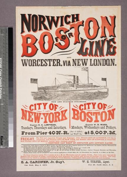 Artists: Parsons, Charles R. (Charles Richard), 1844-1918 or 1920 Printers: Endicott & Co. Companies: Norwich & New York Transportation Co.
