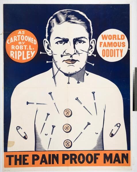 The pain proof man : as cartooned by Robt. L. Ripley : world famous oddity