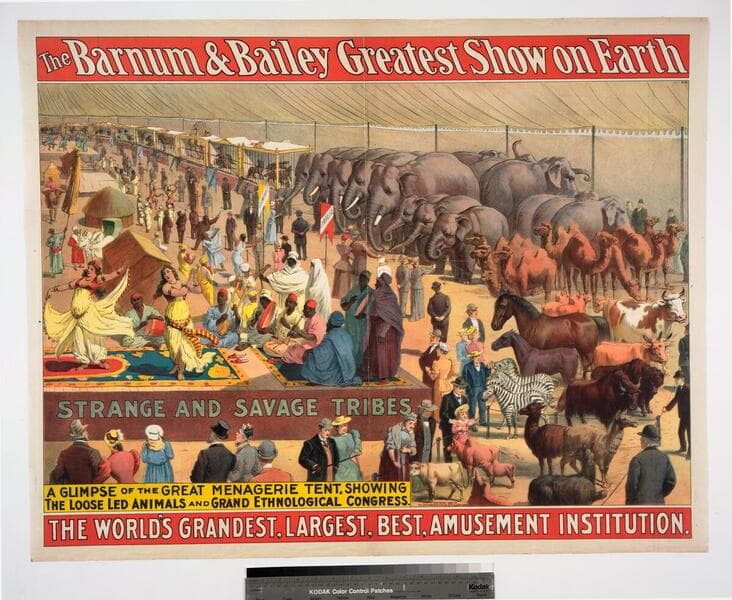 The Barnum & Bailey greatest show on Earth : a partial display of the new enormous menagerie & characteristic groupings of strange and savage people