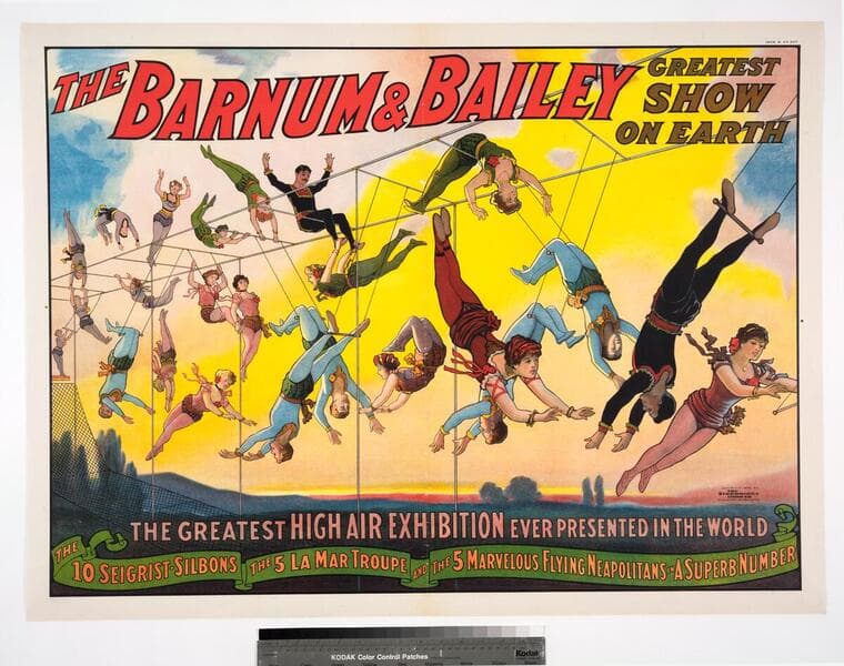 The Barnum & Bailey greatest show on Earth : représentation emouvante dans l'air introduisant la flêche humaine
