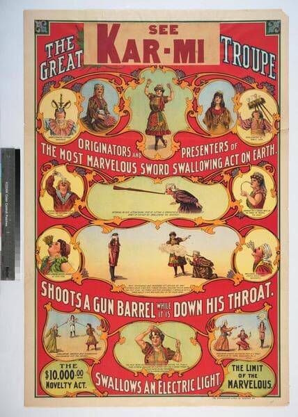 See Kar-Mi : the great troupe : originators and presenters of the most marvelous sword swallowing act on Earth