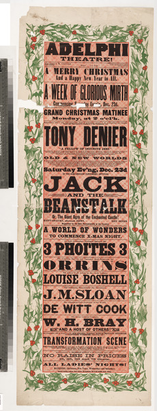 Adelphi Theatre! ... Tony Denier "A fellow of infinite jest." ... in the semi-English pantomime entitled Jack and the beanstalk