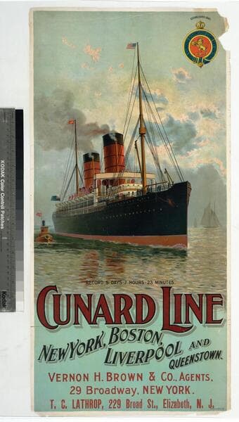 Cunard Line New York, Boston, Liverpool and Queenstown