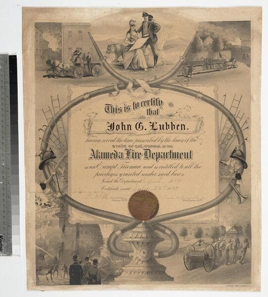 This is to certify that John G. Lubben. having served the time prescribed by the laws of the State of California in the Alameda Fire Department