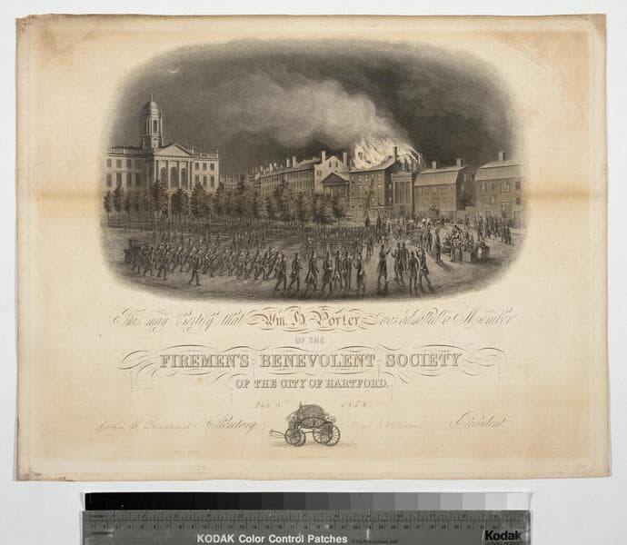 This may certify that ... was admitted a member of the Firemen's Benevolent Society of the city of Hartford
