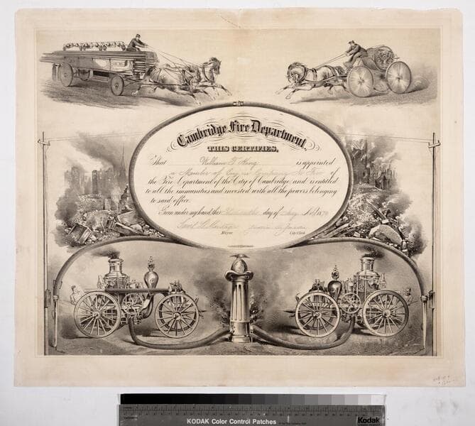 Cambridge Fire Department. This is to certify that William T. King is appointed a member of Engine Company No Five