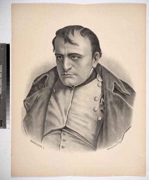 - Image of a bust-length portrait of Emperor Napoleon Bonaparte I of France in military uniform.