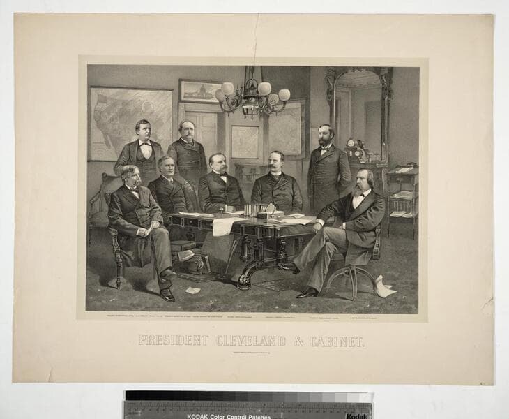 Image of a bust-length portrait of United States president Grover Cleveland.
